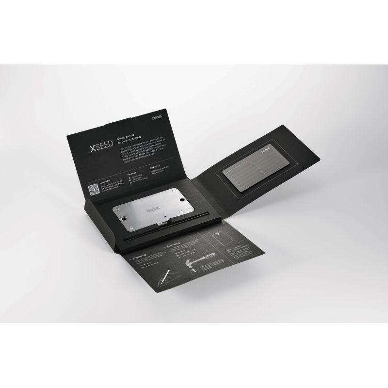 X-SEED PRO, özel anahtarınız için en güvenli ve yok edilemez yedekleme sistemini ve çözümünü sunar. Hacklenemez ve Çevrimdışı Kurtarma kaynağınız çevrimdışı olarak yedeklenir ve siber saldırılara karşı erişilemez. Yanmaz & Suya dayanıklılık Her yönden uyumluluk Hızlı ve Kolay Kurulum Hızlı, kolay ve güvenli kurulum X-SEED PRO, kullanıcıların lazerle işlenmiş karoları zahmetsizce yerleştirmesine olanak tanır ve 6 mm kalınlığındaki yapı, patlama gibi yüksek basınç etkisi altında herhangi bir bükülmeyi veya eğilmeyi önler. GÜVENLİ Yanmaz ve Su Geçirmez Su geçirmez Oyulmuş veya damgalanmış harfler zarar görmez veya suyla bozulmaz. Ateşe dayanıklı 1,5 mm son derece dayanıklı Paslanmaz çelik levhalar yangına ve 2649 °F / 1454 °C'ye kadar yüksek sıcaklıklara dayanabilir. 01. Yayın Tohum deposunu açın, çerçevenin kilidini açın ve uzun yuvanın içine bastırarak güvenlik kolunu serbest bırakın. 02. Ekle Güvenlik kolu serbest bırakıldığında çerçeveyi açın ve her kurtarma kelimesinin ilk 4 harfini yuvaya yerleştirin. 03. Kilit Tüm kurtarma sözcüklerini girdikten sonra, vidayı saat yönünde çevirerek çerçeveyi kilitleyin. UYUMLULUK X-SEED, donanım cüzdanlarının yanı sıra yazılımla da uyumludur. Dahil edilen öğeler Paslanmaz çelik tohum depolamak Gravür kalemi Alüminyum tohum x 1 Kurcalamaya dayanıklı çıkartmalar